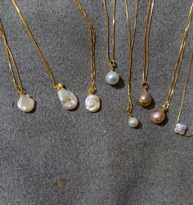 Découvrez des bijoux en perles d'eau douce, faits main.